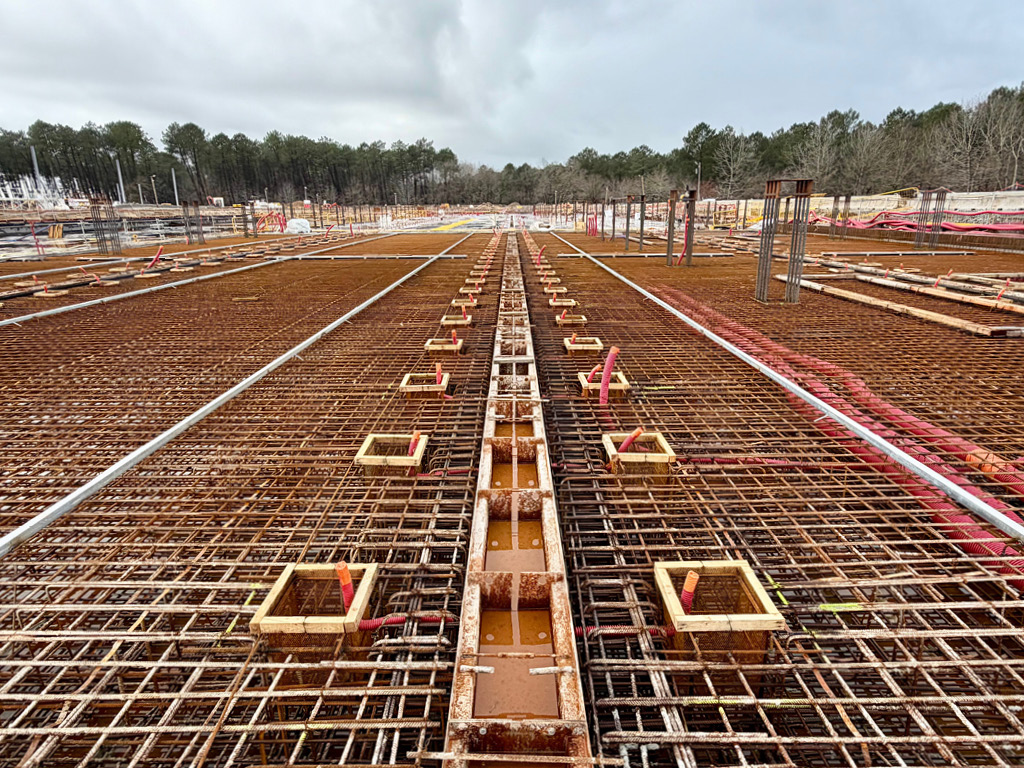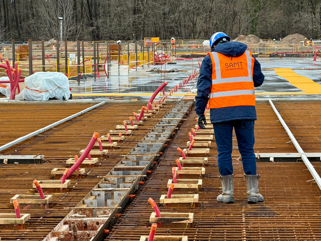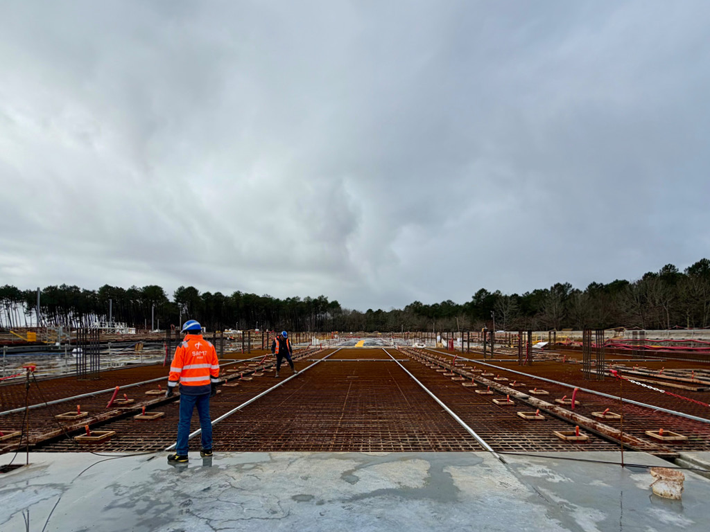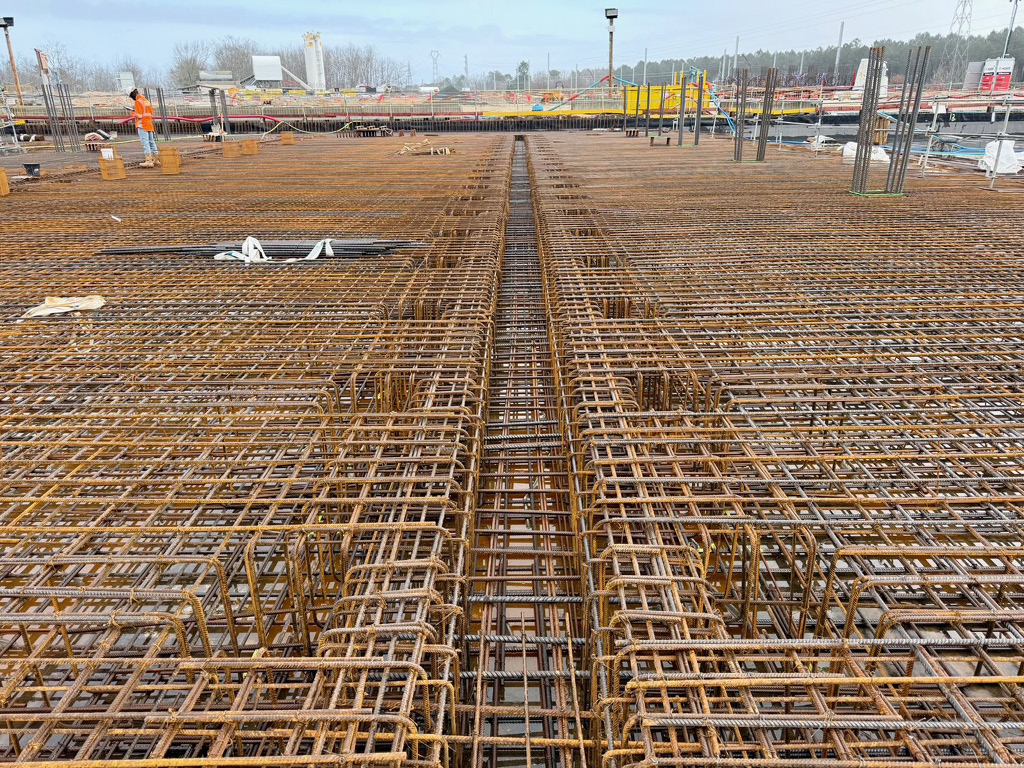 Our SAMT team is contributing to the construction of a massive raft foundation: 220 meters long and 60 meters wide, totaling 13,200 m² of rebar to install. That’s a lot of rebar to place!